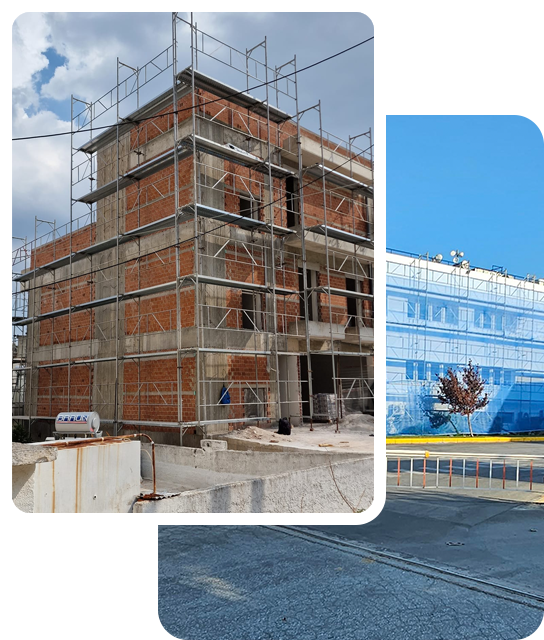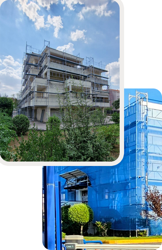 την ενοικίαση σκαλωσιών για κάθε είδους εργασία, όπως οικοδομικές κατασκευές, ανακαινίσεις κτιρίων, βαφές όψεων, θερμομονώσεις, επιχρίσματα και ειδικές τεχνικές εργασίες. Κάθε έργο αντιμετωπίζεται με υπευθυνότητα και επαγγελματισμό.