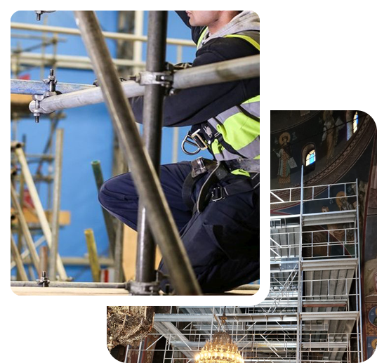 τοποθετήσεις σκαλωσιών για βαφές, επιχρίσματα, θερμομονώσεις, ορθομαρμαρώσεις και κάθε είδους οικοδομική ή ανακαινιστική εργασία.